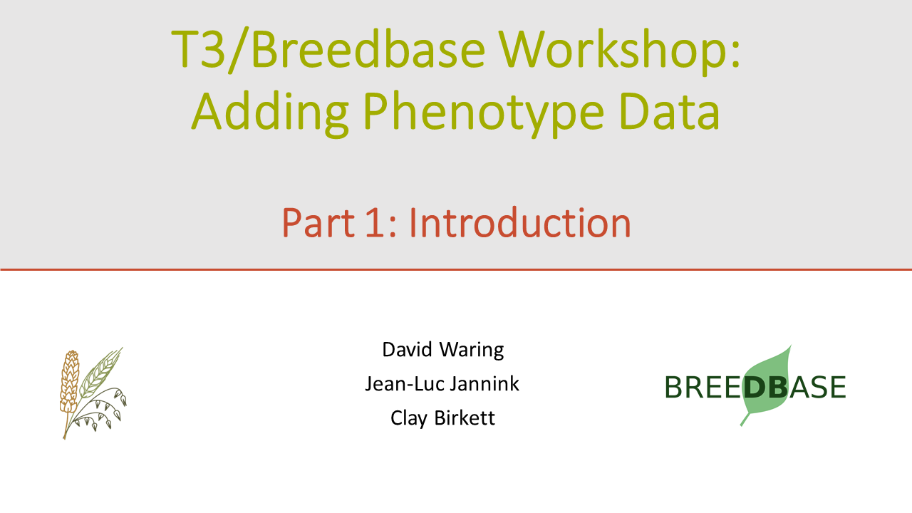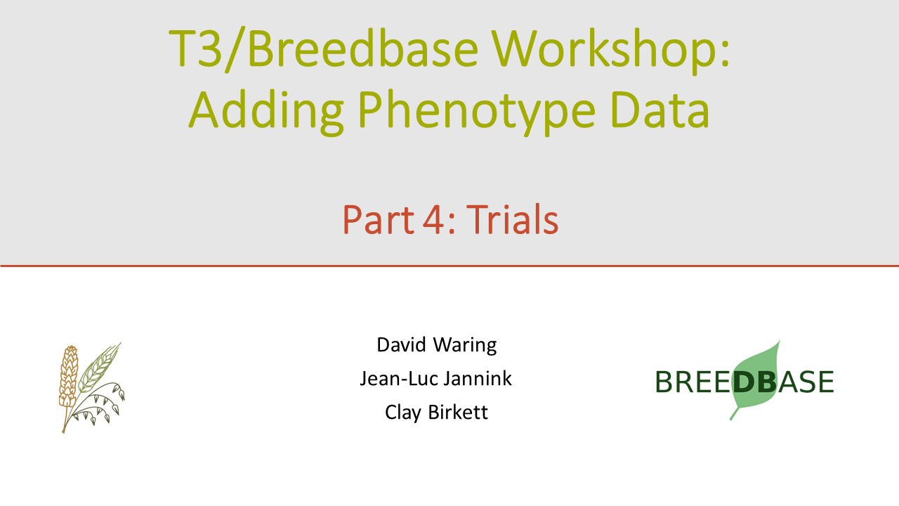 These videos are from a virtual workshop we held in 2020, which goes over the process of loading Phenotyping Trials into T3/Breedbase. Each video is a clip from the workshop and is broken down by data type.