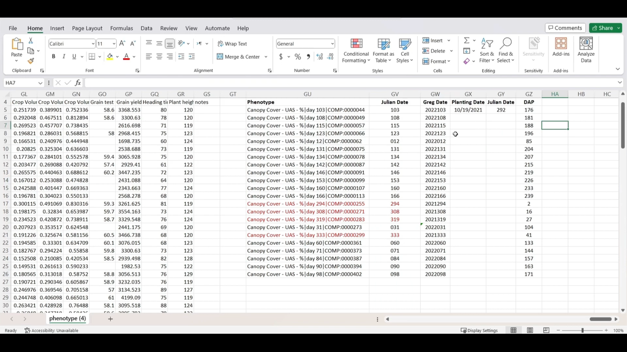 This video shows you how to convert the Julian Date used in time-series traits to days after planting for a trial where the planting date is known.